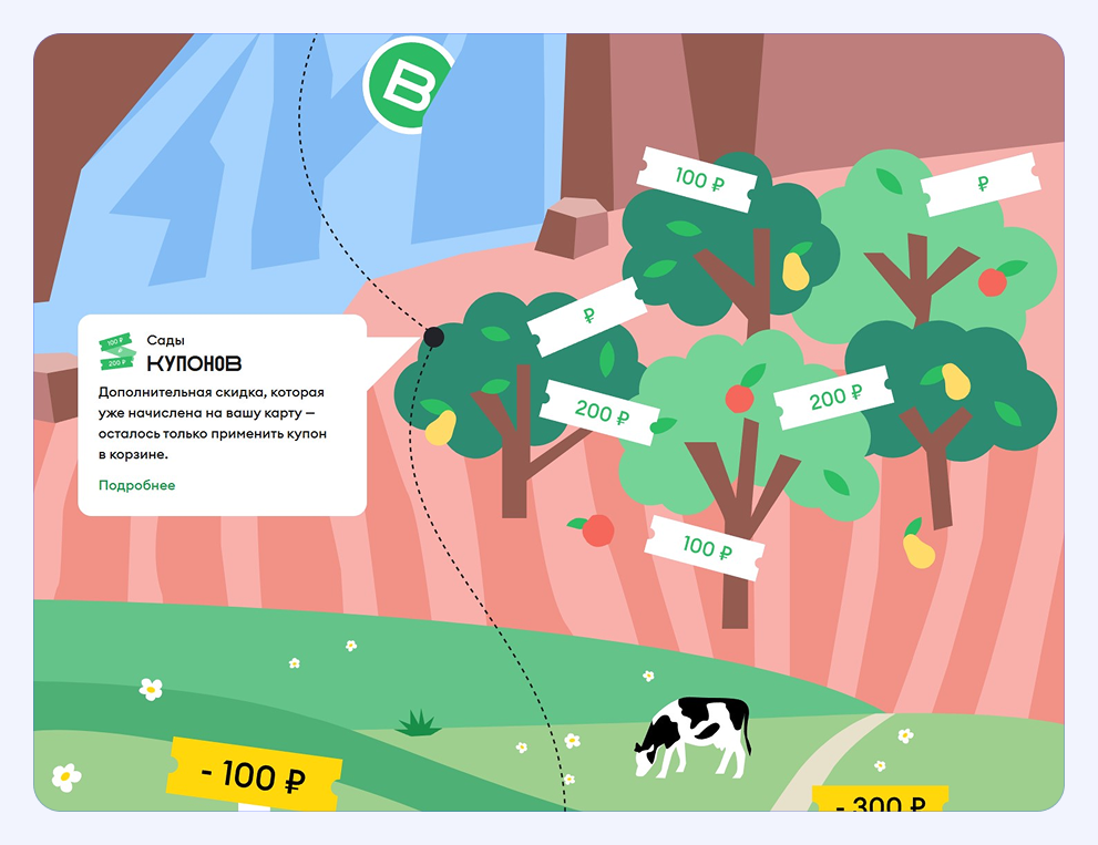 ВкусВилл: геймификация в программе лояльности. Компания разместила на сайте интерактивную карту, на которой спрятаны игры.