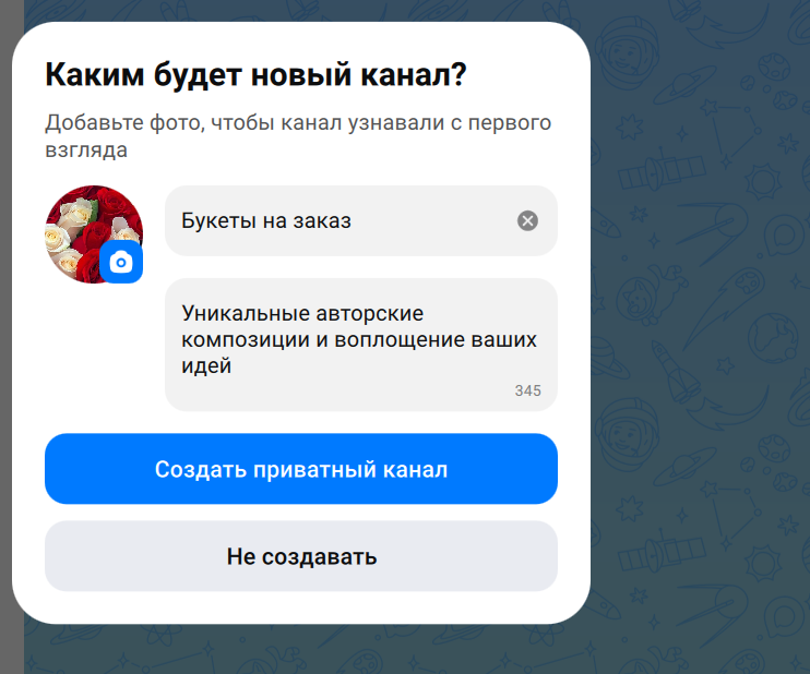 - описание — до 200 знаков, допускаются спецсимволы и эмодзи.
