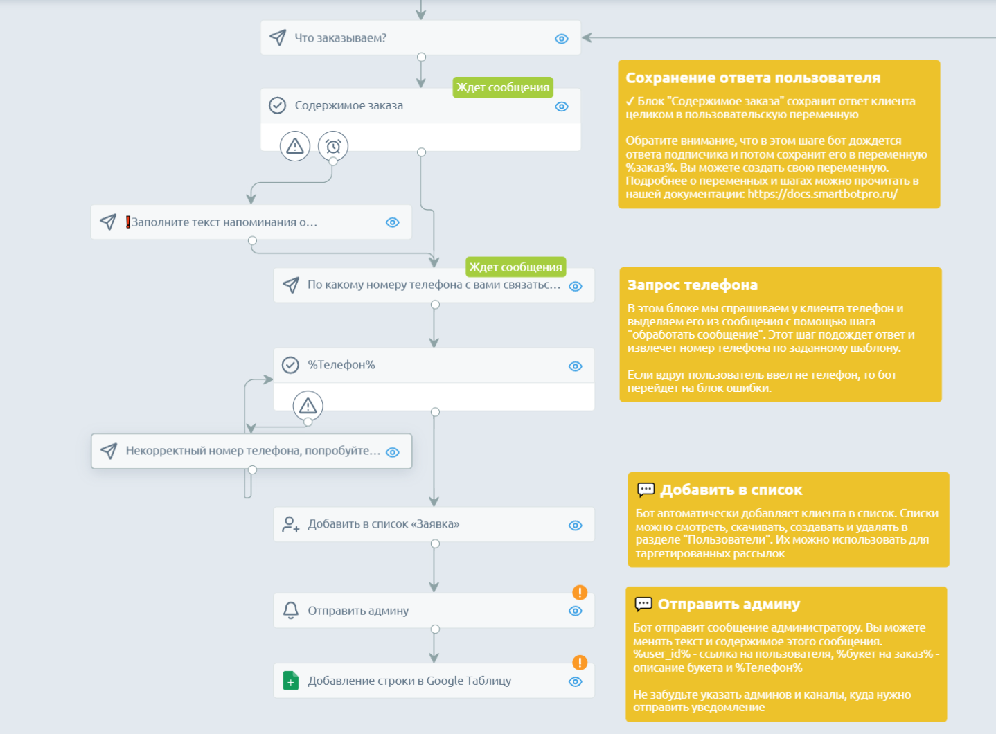 В Smartbot Pro есть 25 готовых сценариев под задачи бизнеса из разных направлений: